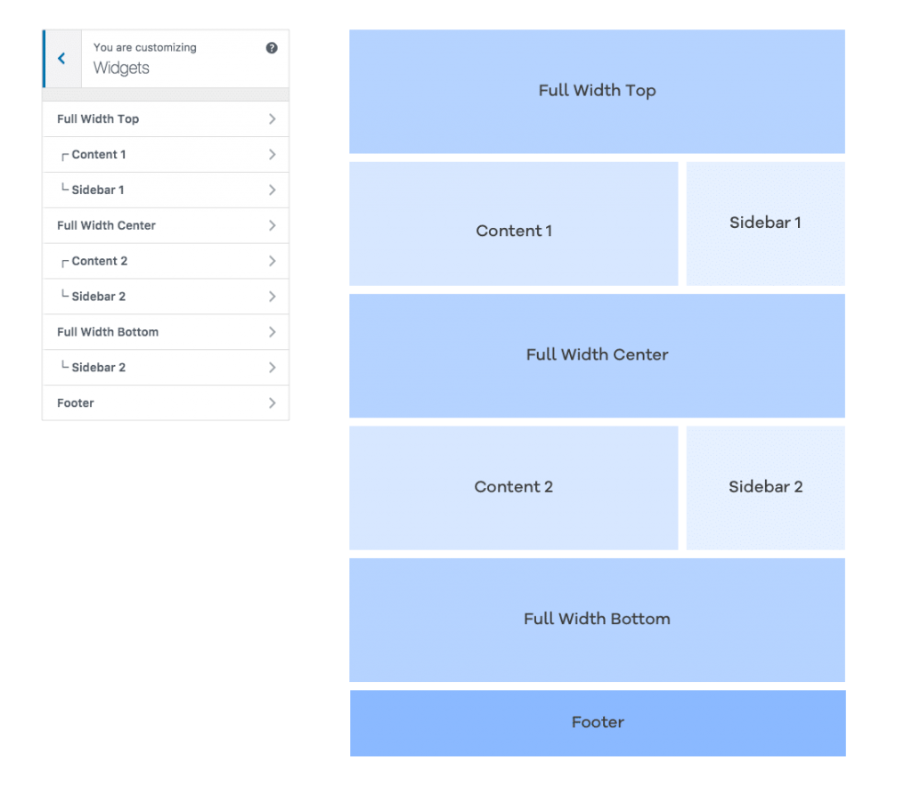 For example, the front page of our Julia demo is built with the Front Page template. Here are the Widget areas that you can find: